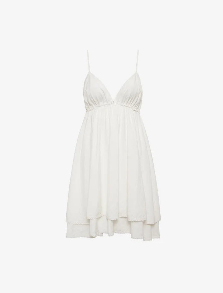 Crafted from an airy blend of cotton linen, this summer mini features an elastic bust and delicate picot lace trim. Light, swingy, and sweet—it’s made for sunny days and seaside escapes.