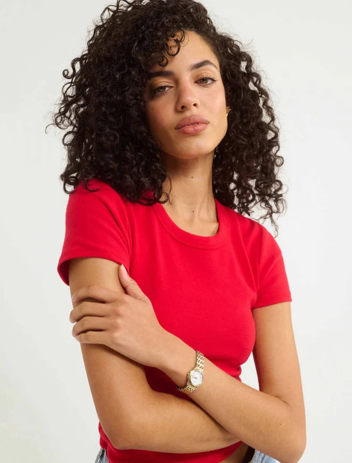 Made to pair and layer with everything, this is the perfect soft cropped crewneck staple tee. Available in a new limited edition color for summer, Shirley Temple.